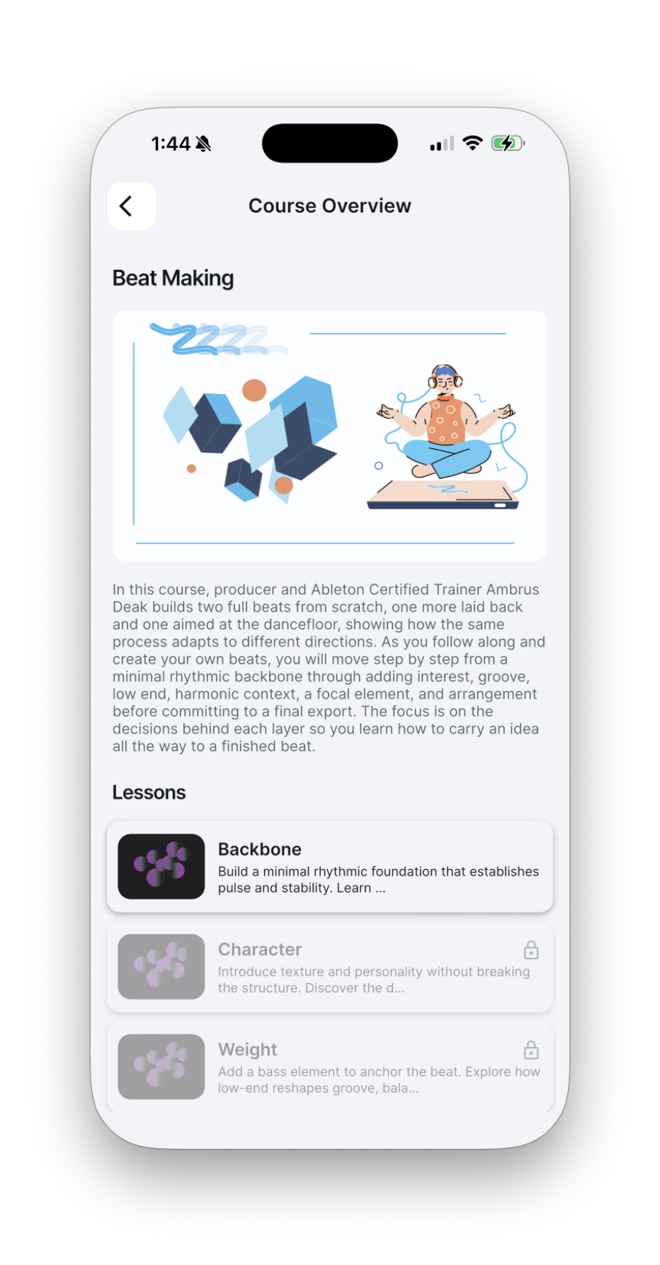 A practical course that fills the common gaps many producers have around their environment, tools, and workflow. It covers the essential gear, software basics, and production setup needed to start working confidently and efficiently.